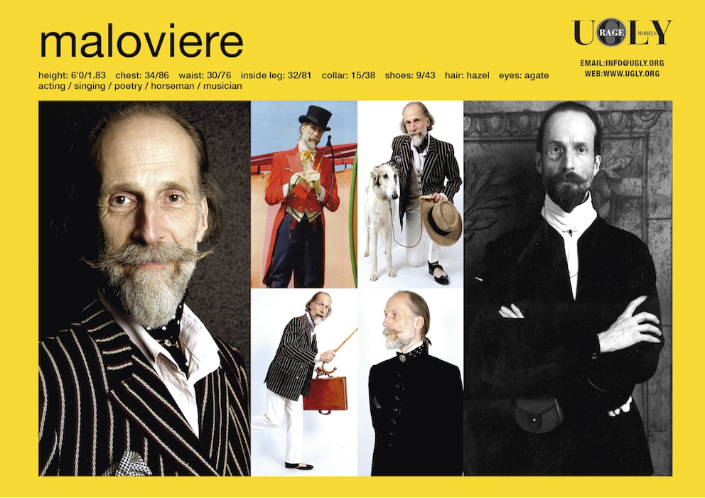Maloviere has also appeared in various national and international television-commercials (including, among others, Sony Playstation, Sega Dreamcast, The Portuguese Ministry of Culture, German National Railways [with ‘super-model’ Cindy Crawford], Camelot’s National Lottery, British Telecom, Harvey’s Bristol Cream, Arthur Price of England, Lindt Swiss Chocolates and The Sun newspaper); music-videos (including Alfie with Mick Jagger, The Box Song for B. Tuff, Big Country’s Beautiful People, Babe for Take That! [in which he both appeared as ‘The Composer’ and created the calligraphy], and most recently I'm Not Your Toy for La Roux); and as a cat-walk model in numerous international fashion-shows staged in London, Paris, Milan, Düsseldorf, Tokyo and New York, some of which were also televised.